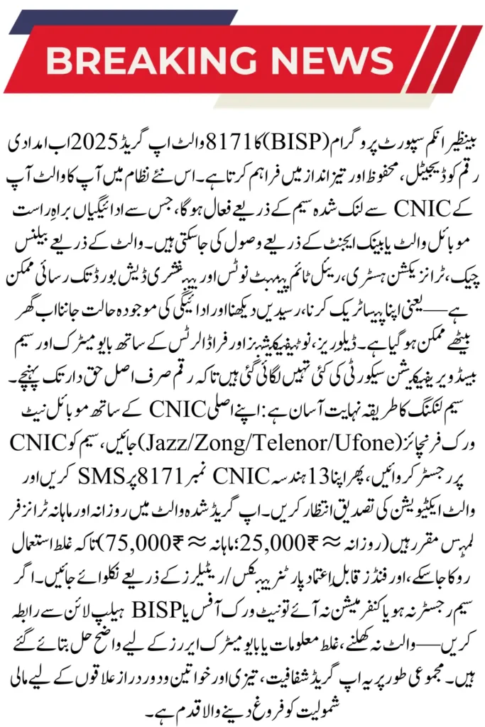 8171 BISP Wallet Upgrade 2025 – New SIM Linking, Secure Transfers & Real-Time Beneficiary Dashboard