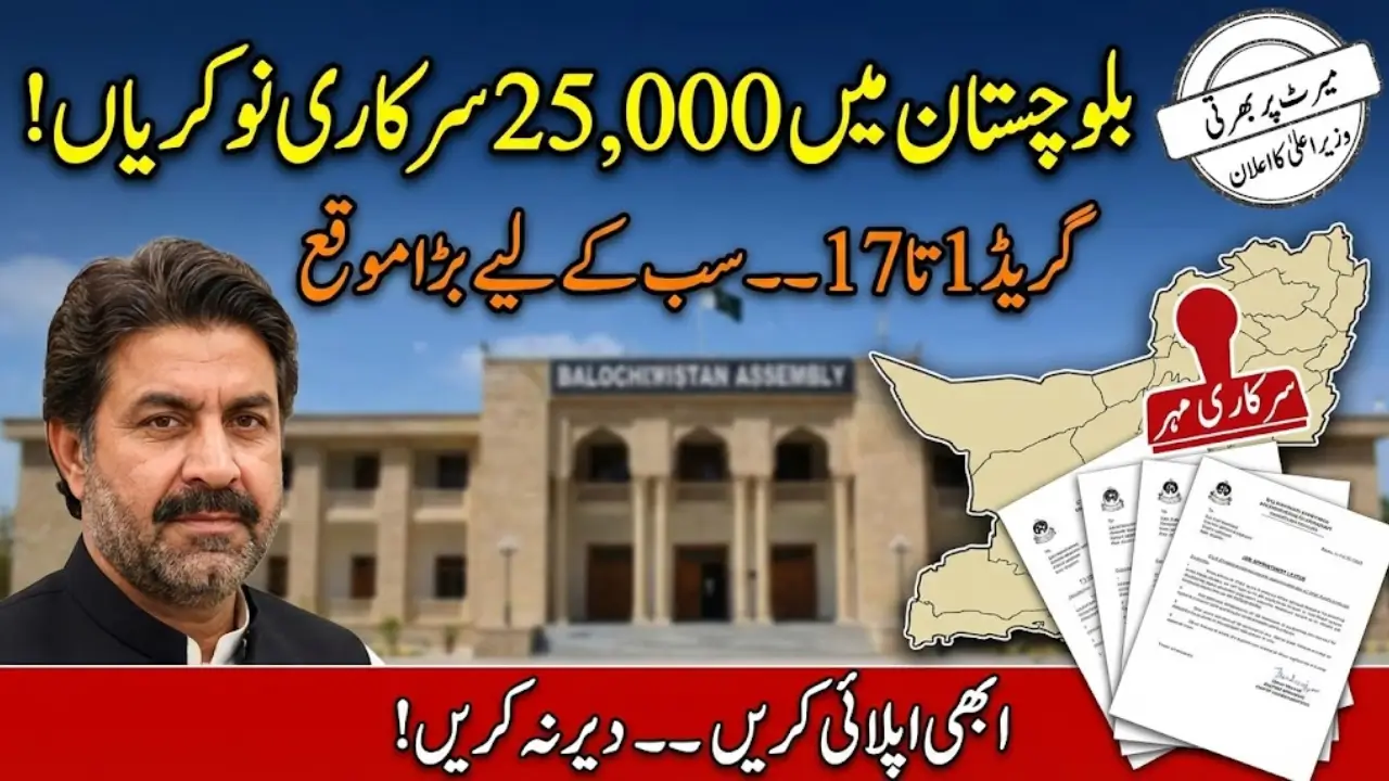 The Balochistan government has officially confirmed a large-scale recruitment drive as the government announces 25000 jobs in Balochistan across multiple provincial departments. The announcement was made by Chief Minister Sarfraz Bugti, highlighting the administration’s focus on employment generation and institutional strengthening. This move is aim at addressing long-standing vacancies while creating new opportunities for job seekers across the province.